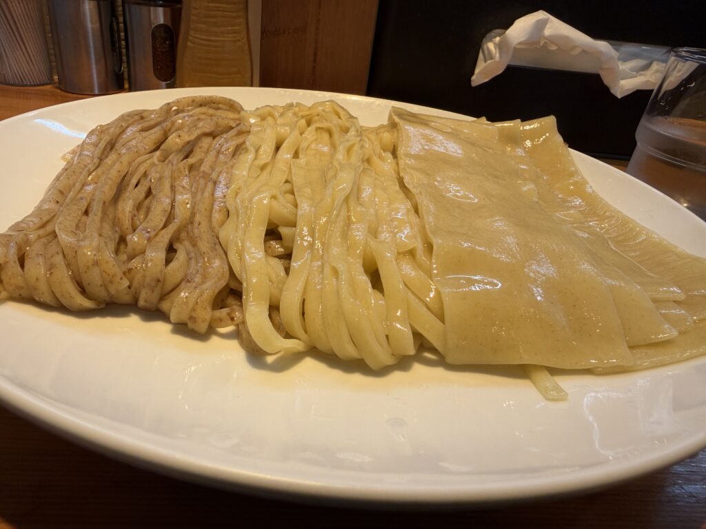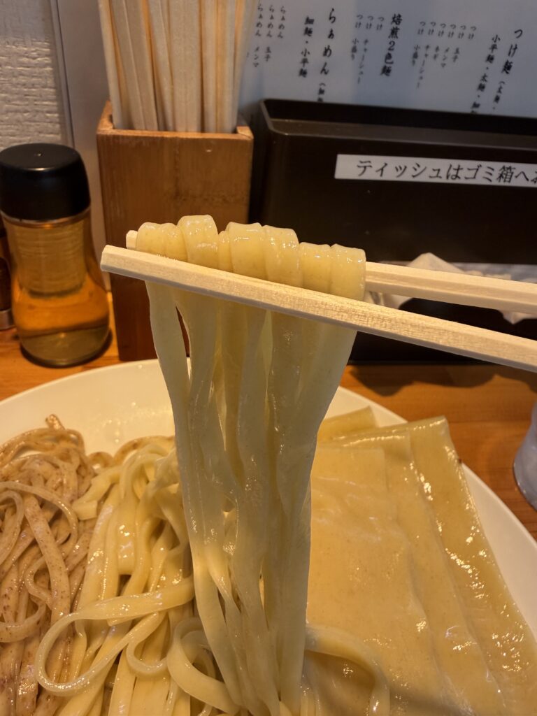↑「凄平麺」は割る前の割り箸の太い方の幅4本分くらいの幅でした!
