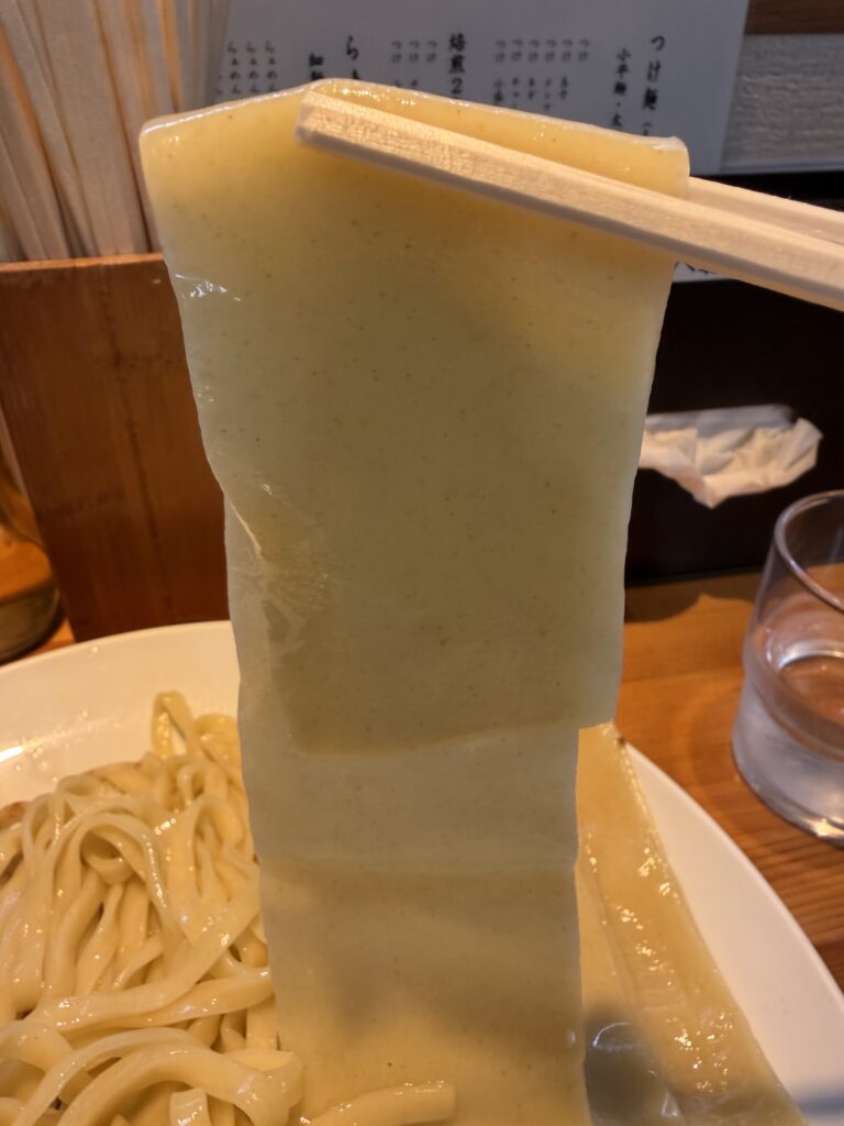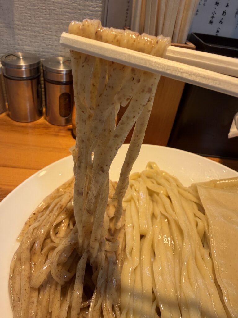 店内に製麺機があり、おそらく打ち立ての麺です。ラーメンというよりはうどんのようなツルツルとした喉越しでした!