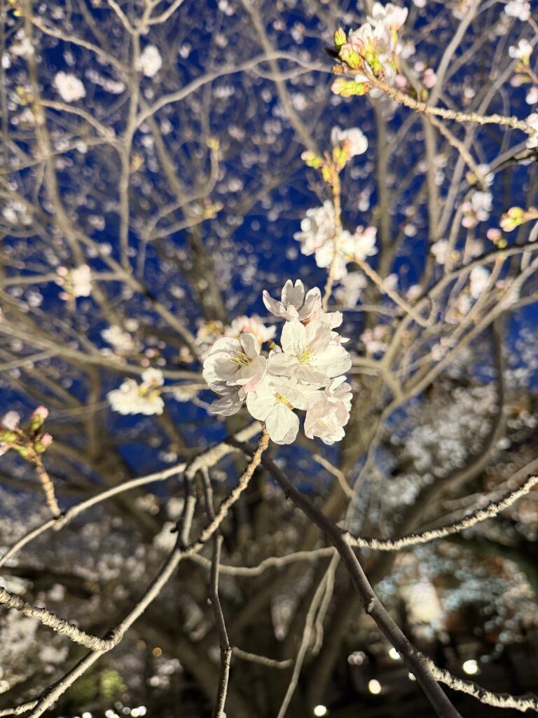 昼間の花見とはまた違い、夜桜は静かで落ち着いた魅力があります。
