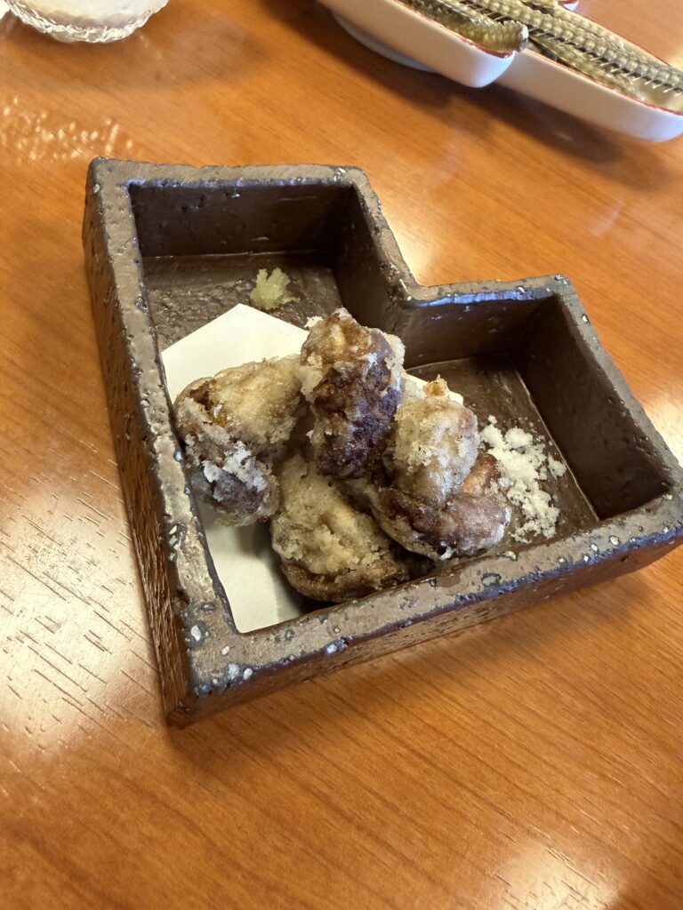 肝の唐揚げは、独特の旨みと弾力があり、お酒が欲しくなる味。